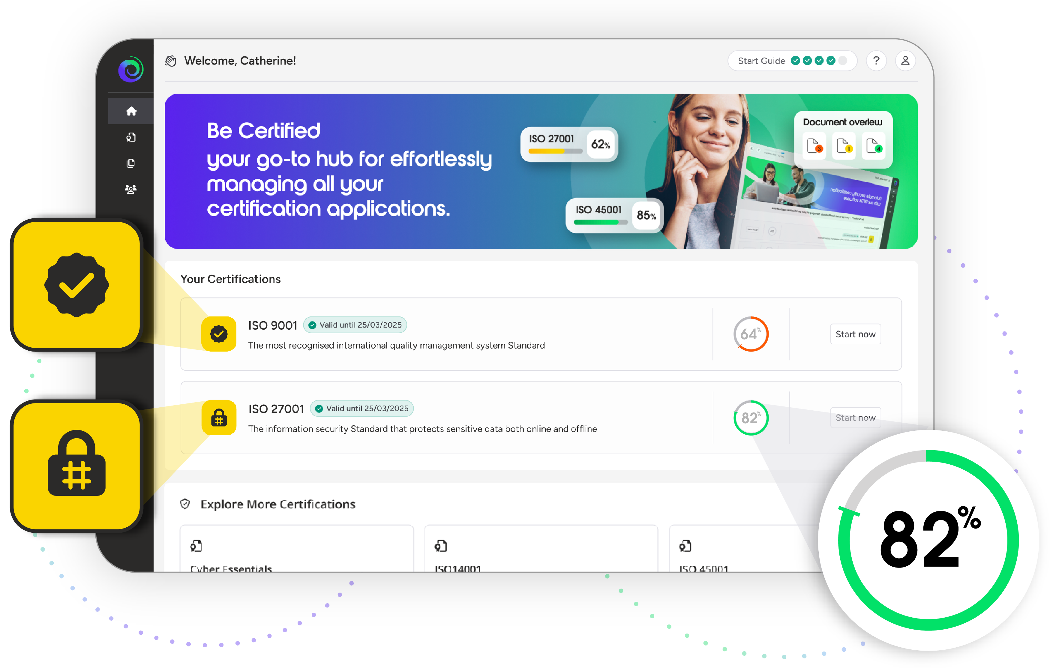 Be Certified helps you and your team work towards and maintain the most important certifications for business compliance and growth, including ISO 9001, 45001, 27001, and ESG Essentials.